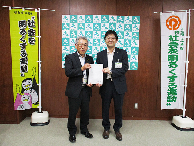 - 青葉地区保護司会及び更生保護女性会の皆様が青葉区役所を訪れ、谷田至史区長に内閣総理大臣メッセージを伝達しました。