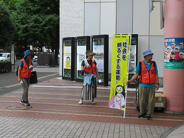 - 定禅寺通及び広瀬通にて街頭啓発活動を実施しました。今年も暑い中での活動でしたが、青葉区社明及び保護司会から31名にご参加いただき、啓発を図ることができました。
